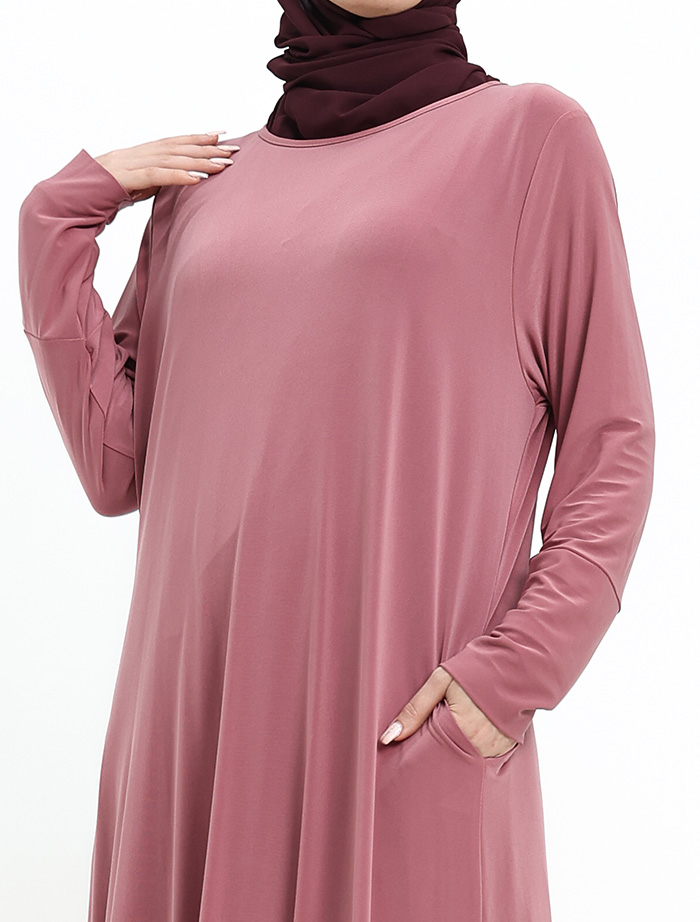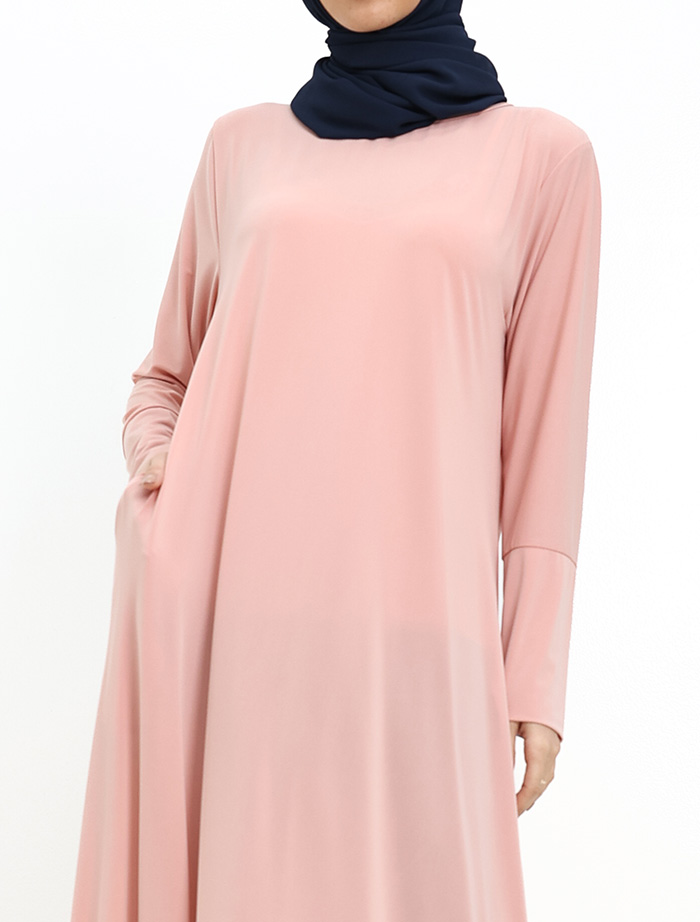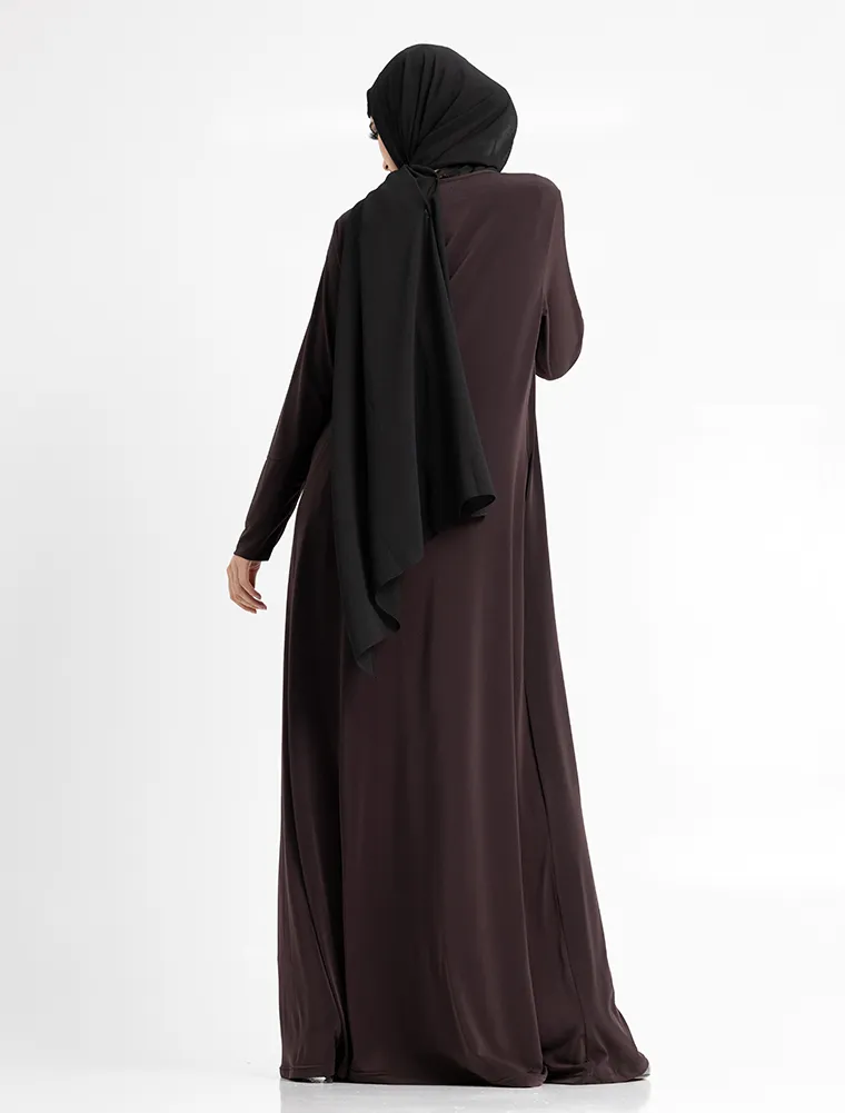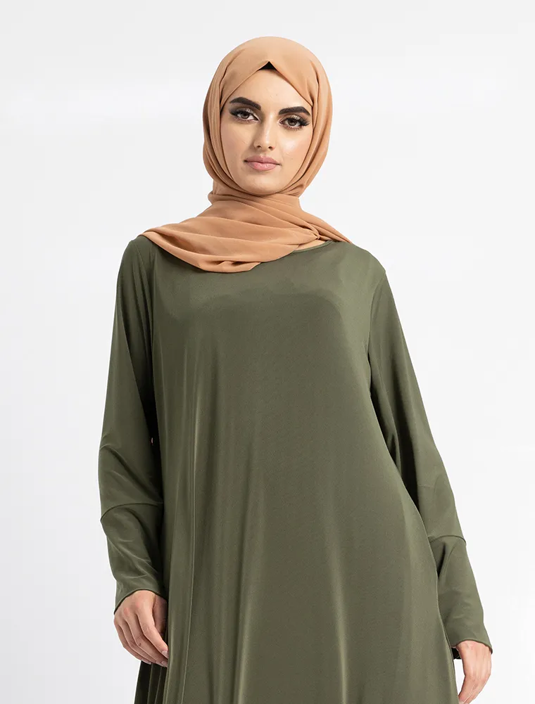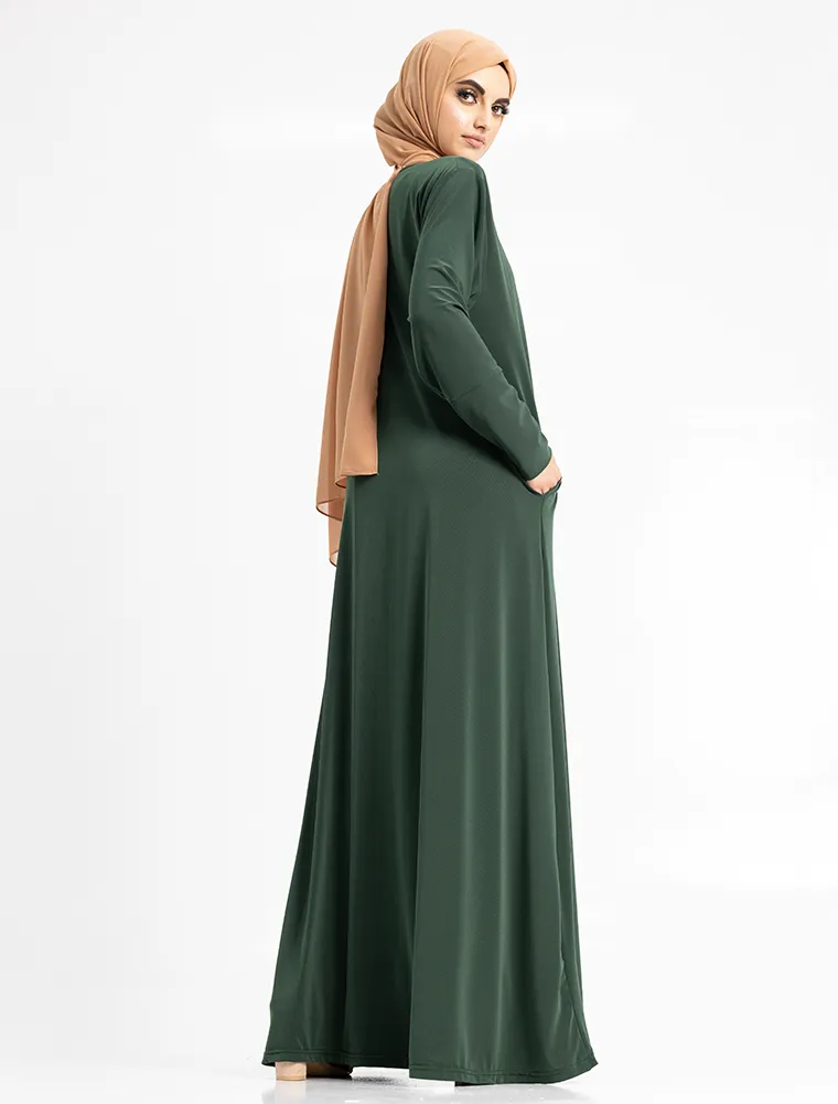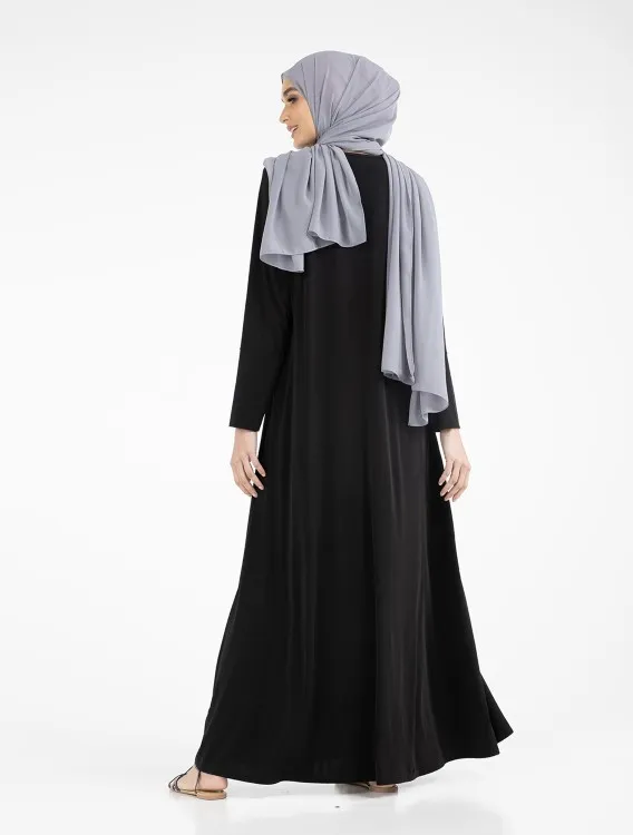 This abaya is beautifully tailored in a flattering A-line silhouette. Designed for everyday wear, it features convenient pockets for your essentials and stretchy cuffs for added comfort. A timeless wardrobe essential.
