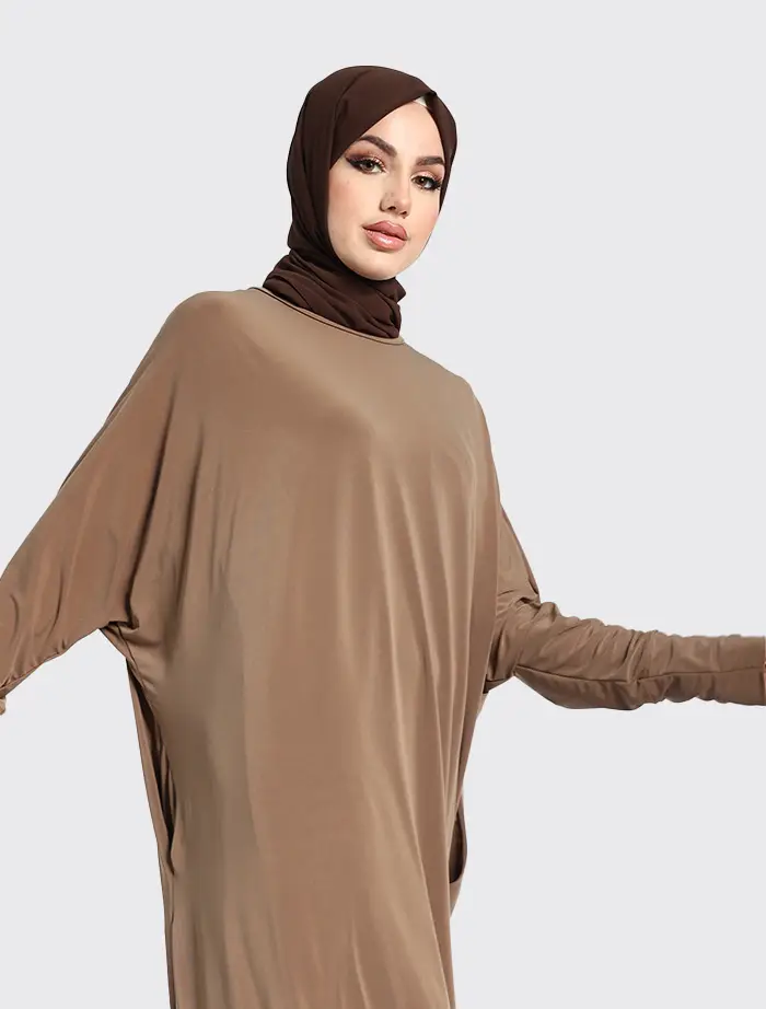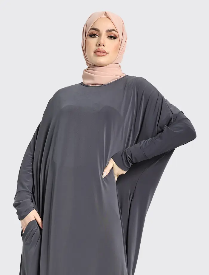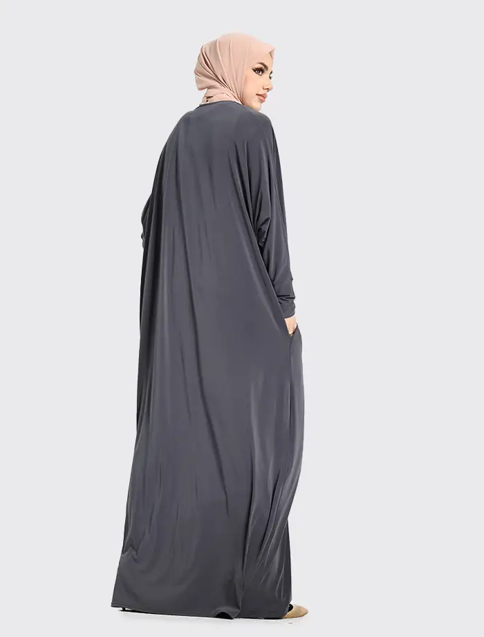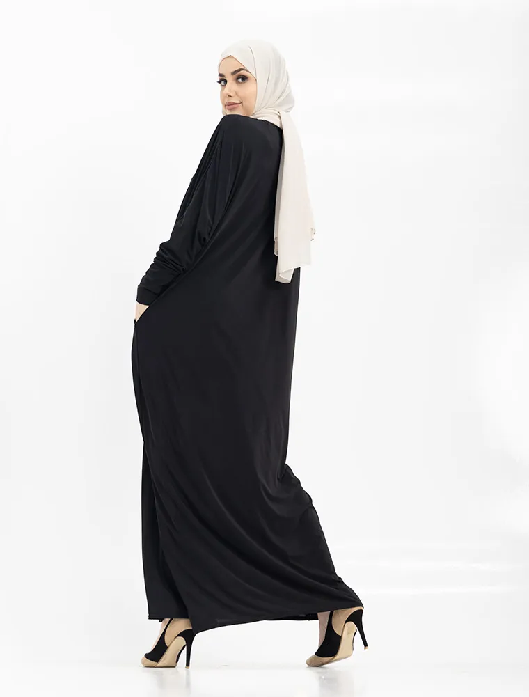 Batwing Jersey Abaya features loose cut fitting with stretchy cuffs at the end of the side seam which is great for everyday comfort.