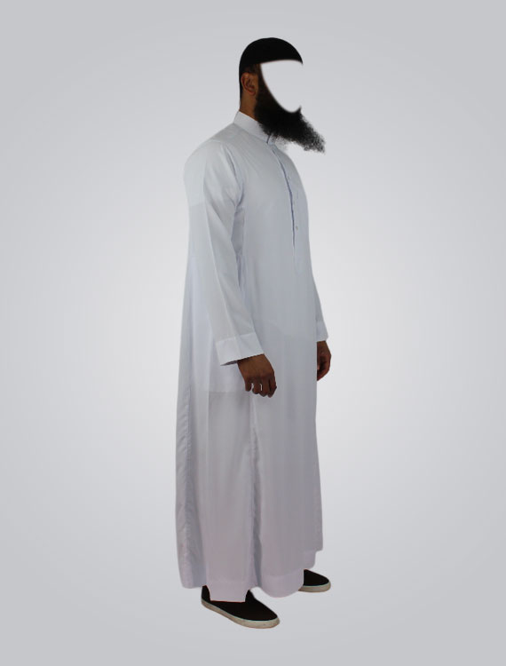 The long sleeve pure color thobe crew stand collar kaftan robe with button is a traditional dress. It features a long, loose-fitting robe with long sleeves, a stand-up collar, and buttons down the front. The pure color design is simple and elegant, and the kaftan style provides comfort and ease of movement. This type of robe is often worn for religious or formal occasions, and it can be paired with traditional headwear and footwear to complete the look. Overall, the thobe is a versatile and practical garment that reflects the cultural heritage and values.