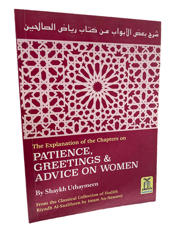 “Patience, Greetings & Advice On Women” is a book that compiles various Islamic hadiths that revolve around the topics of patience, greetings, and advice on how to treat women. The book includes a collection of teachings and guidance from the Prophet Muhammad on the importance of cultivating patience and its rewards, as well as how to properly greet and interact with others. It also provides advice on treating women with respect, kindness, and fairness. This book is an excellent resource for those seeking to deepen their understanding of Islamic values and practices, and to improve their interpersonal relationships with others.