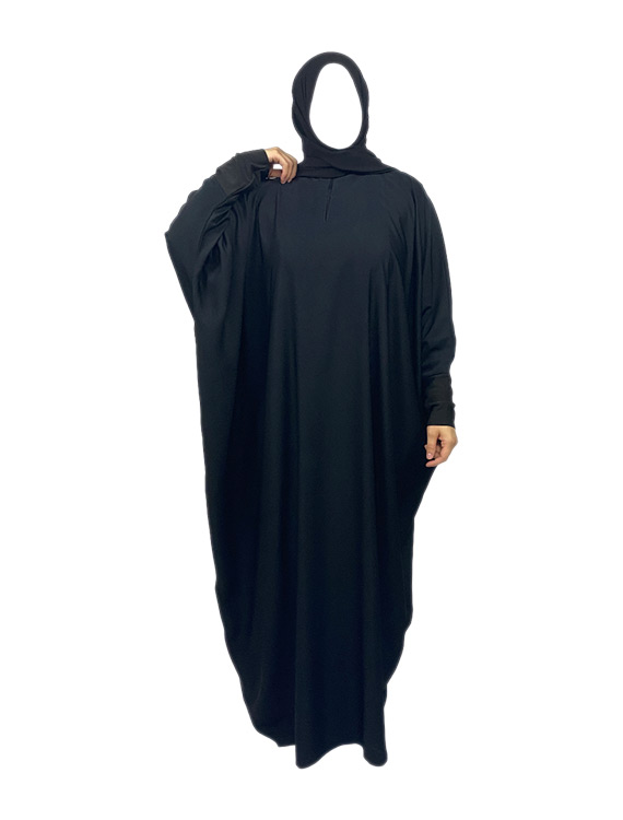 A butterfly abaya features a unique design resembling the shape of a butterfly. It typically has a flowy and loose silhouette, with wide sleeves that resemble butterfly wings, and may be made from lightweight fabrics such as chiffon, georgette, or nidah. Popular for its modest and flowing  features.