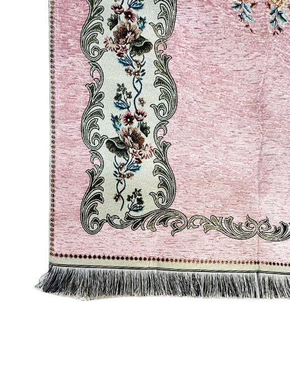 Prayer mats, also known as prayer rugs, are used by Muslims during daily prayers. They are typically made of materials such as wool, cotton, or silk, and may feature various colors and designs. Light pink is a popular color for prayer mats, representing femininity, love, and compassion. These mats often feature simple designs or patterns, with the pink color serving as the dominant feature. Prayer mats provide a clean and comfortable surface for prayer, while also helping to create a sacred space for spiritual reflection and connection with God. They are portable and easy to roll up, making them convenient for use at home or while traveling.