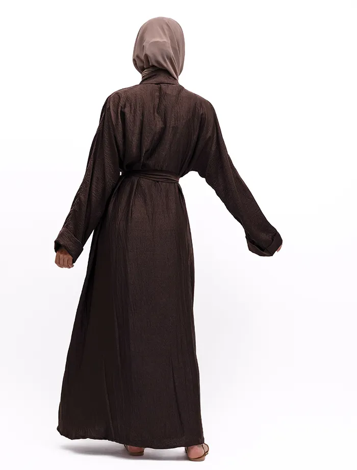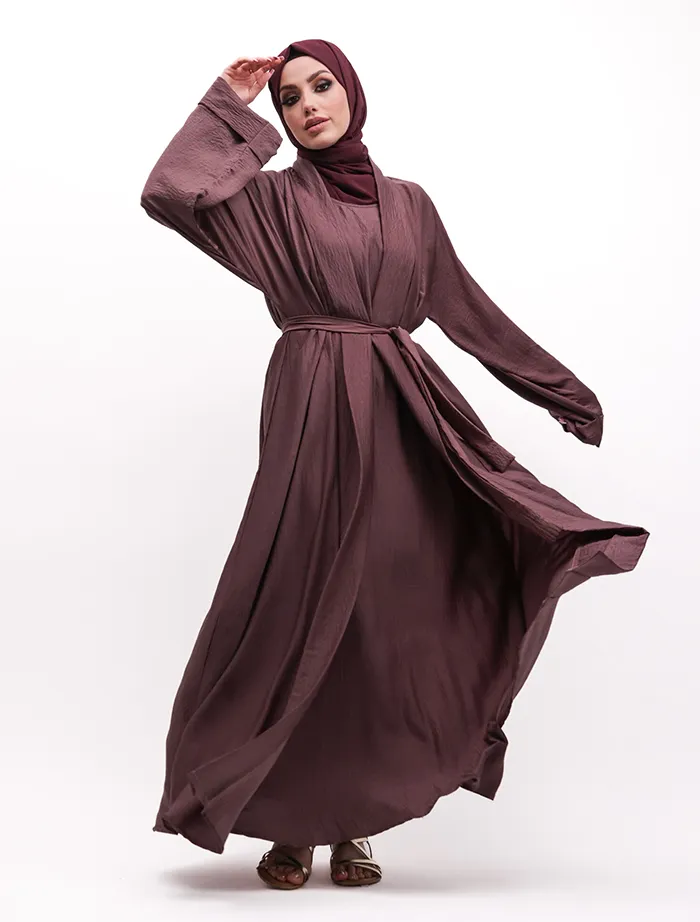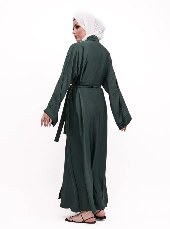 This kimono represents minimalism, although simple it will meet your expectations for your everyday comfort with light airy silk fabric. This kimono features a inner slip attached which gets covered up with a simple kimono with a front fold panel and fold cuffs. A separate optional belt is included to give a more structured look, or you can just opt for the more casual look without it.
