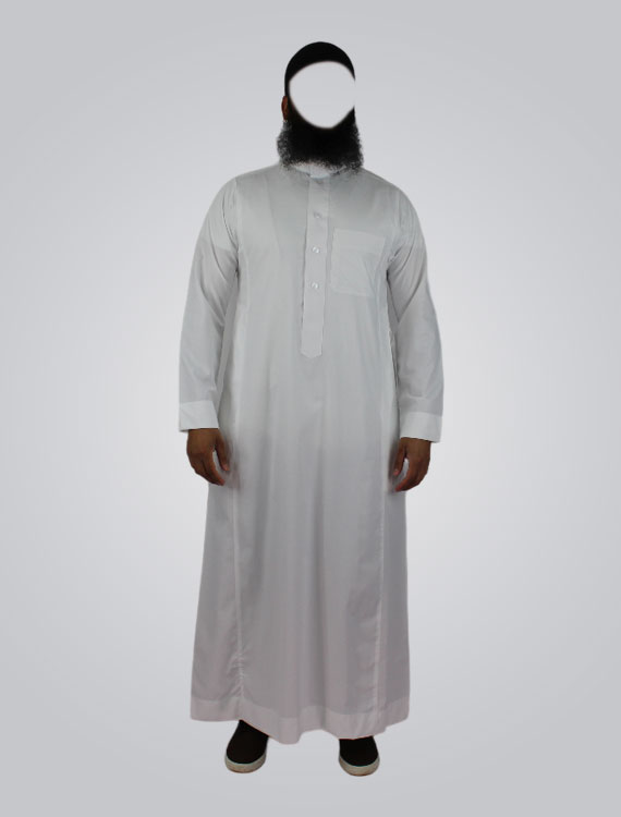 Its mandarin collar combines traditional Arab and Chinese styles, creates a unique and modern look. This type of thobe is often worn for special occasions.