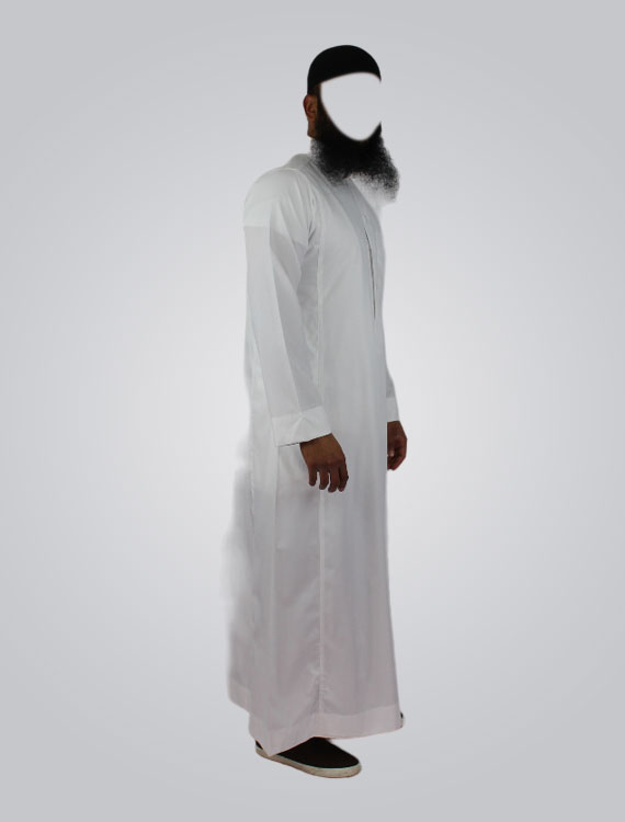 This long, loose-fitting thobe is worn by men in many Arab countries, particularly in the Gulf region. Its lightweight fabric keeps the wearer cool in hot climates.