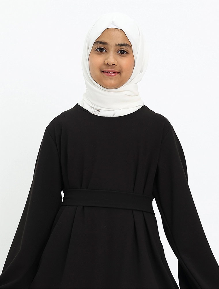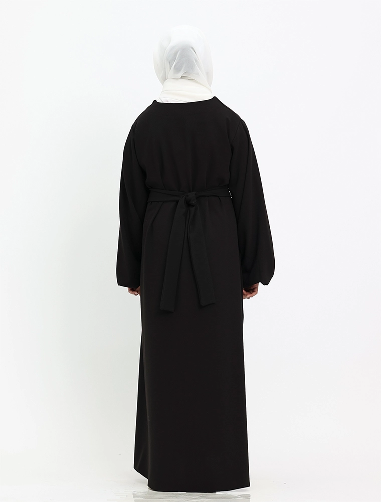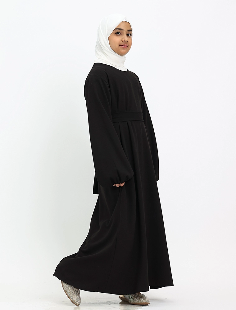 Another basic abaya which you can’t go wrong with, although simple it will meet your expectations for your everyday comfort. This dress features an A-line cut flared bottom with pockets on both sides for your essentials, elasticated cuffs to give a slight puff look. A separate belt is included to give a more structured look or you can just opt for the more casual look without it.
